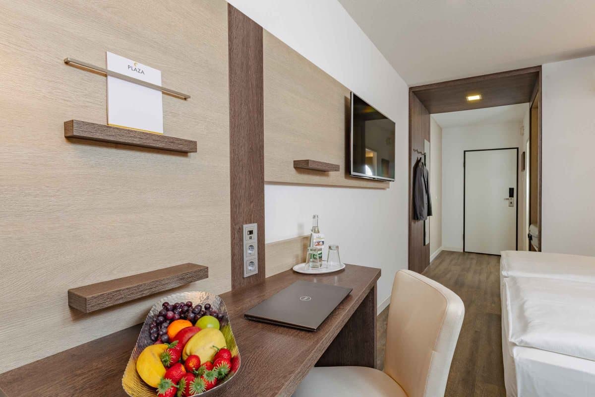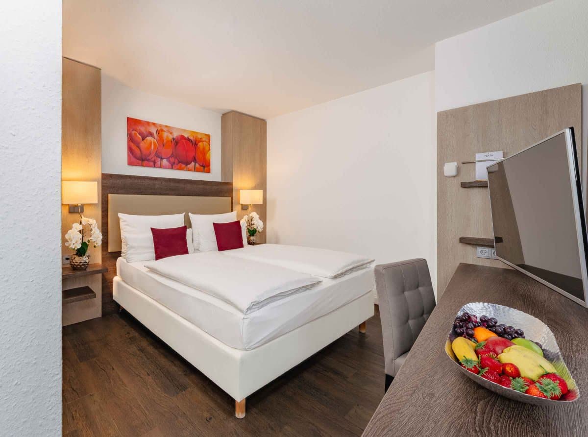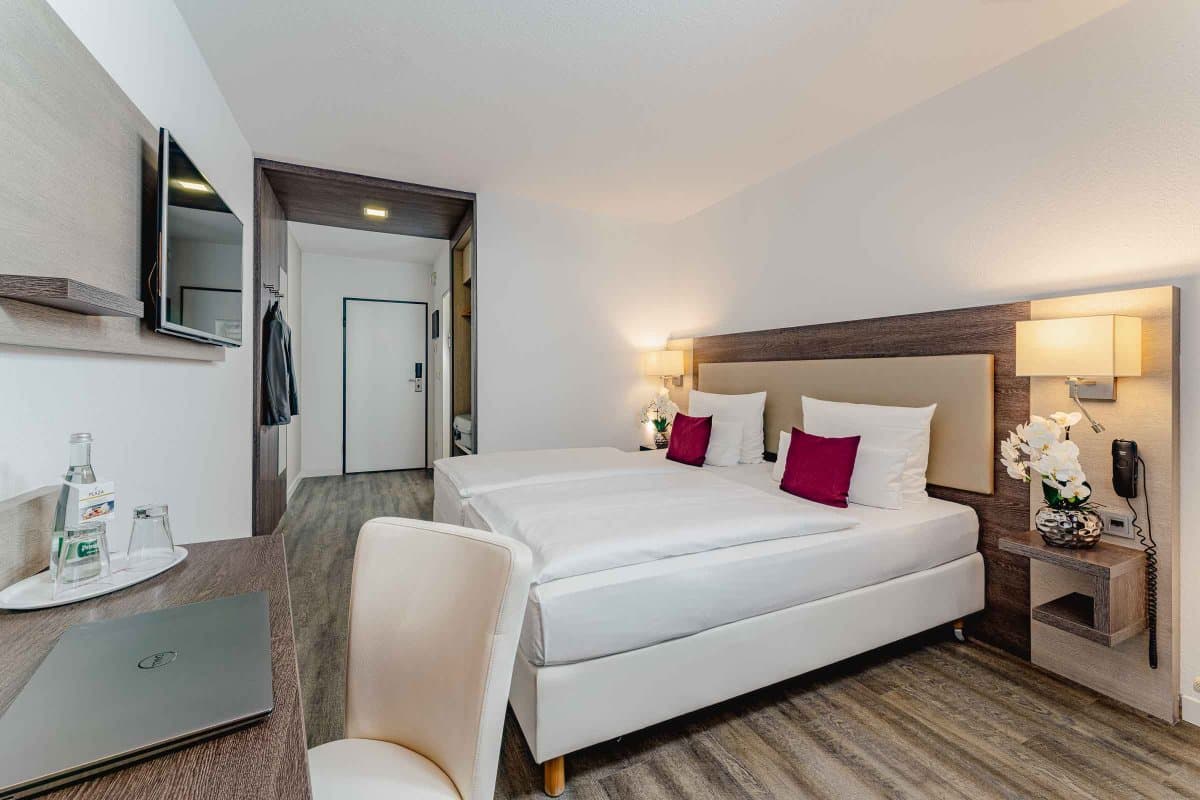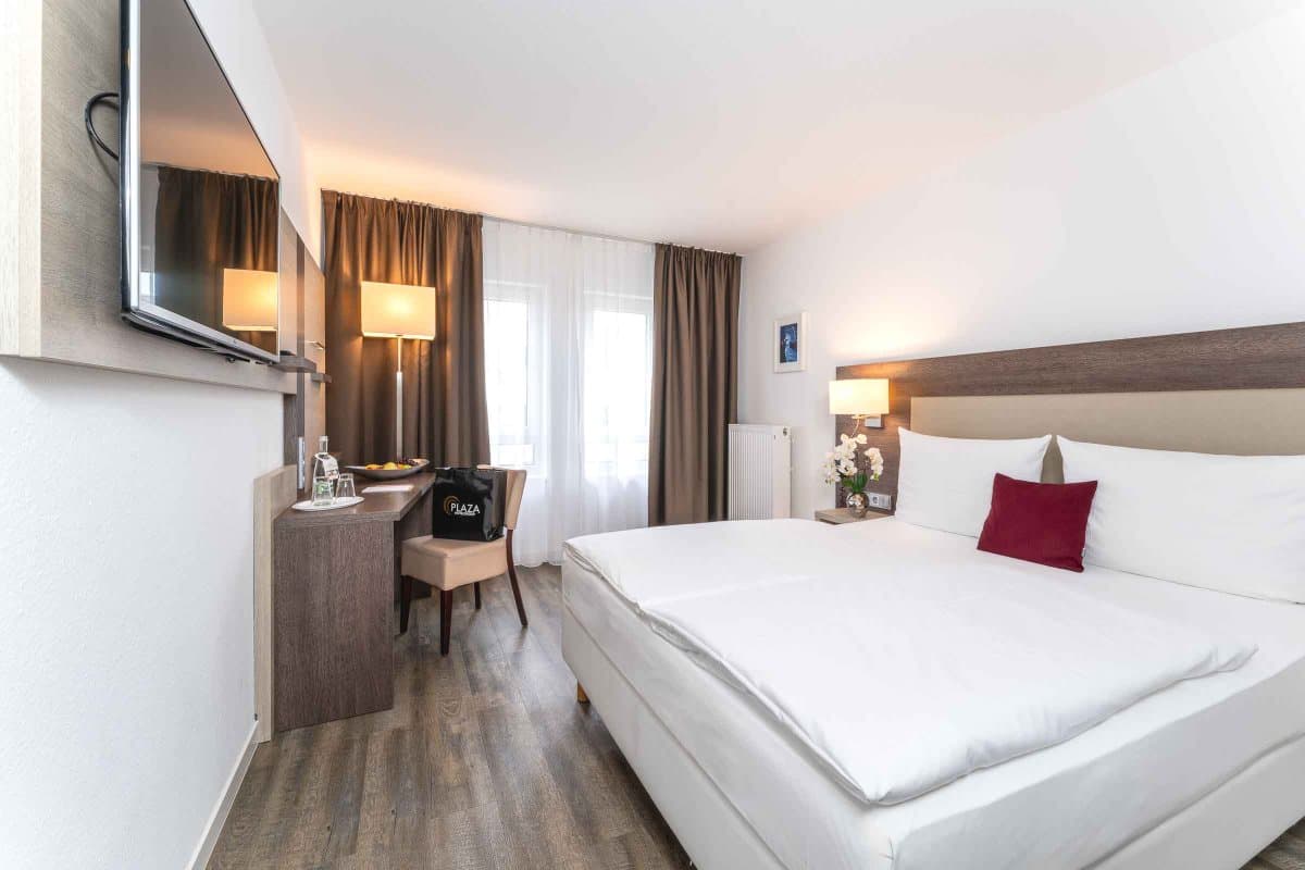 Im PLAZA INN Karlsruhe Nord erwarten Sie nicht nur Komfort und Stil, sondern vor allem die passenden Zimmer für Ihre Bedürfnisse. Für einen kurzen Aufenthalt zum Beispiel im Rahmen einer Dienstreise oder auf der Durchreise in die Niederlande oder nach Österreich bieten unsere Standard und Comfort Zimmer genügend Platz für Erholung sowie zum Arbeiten.