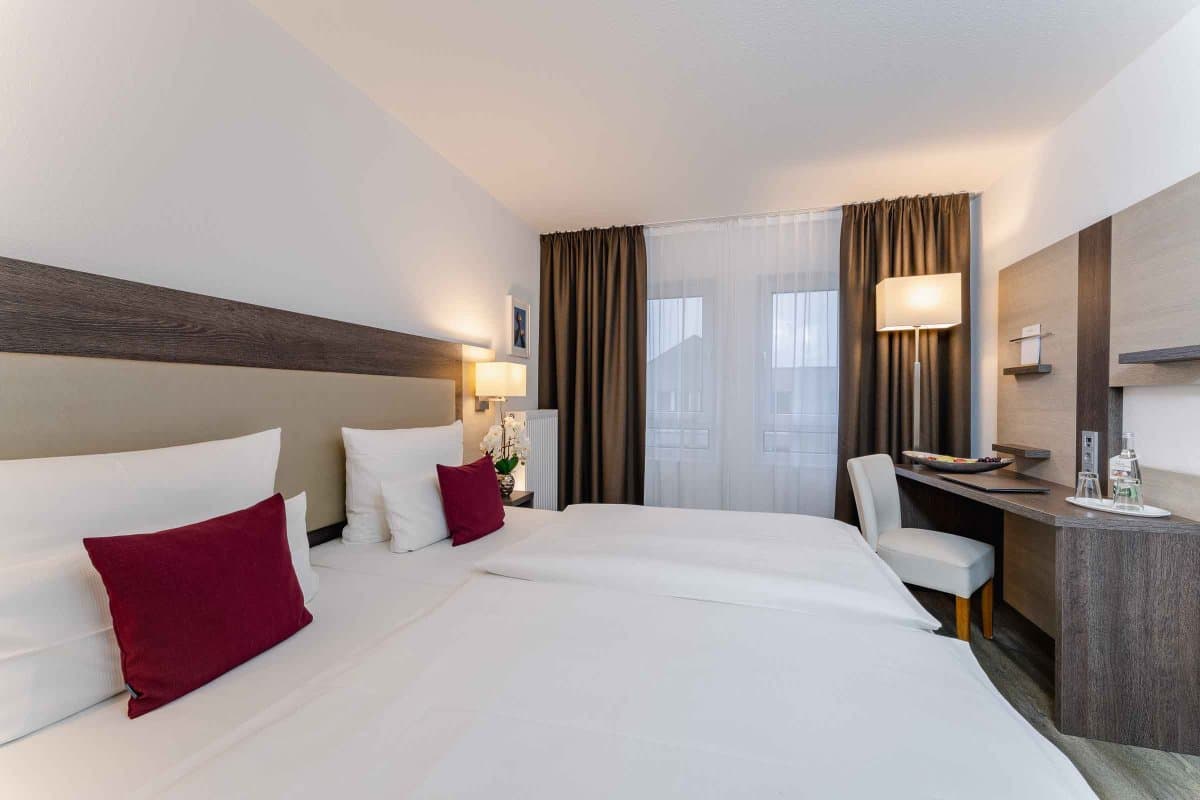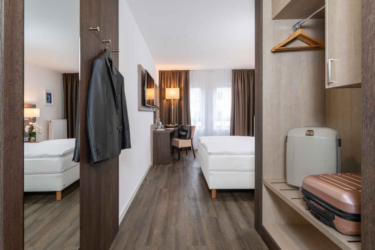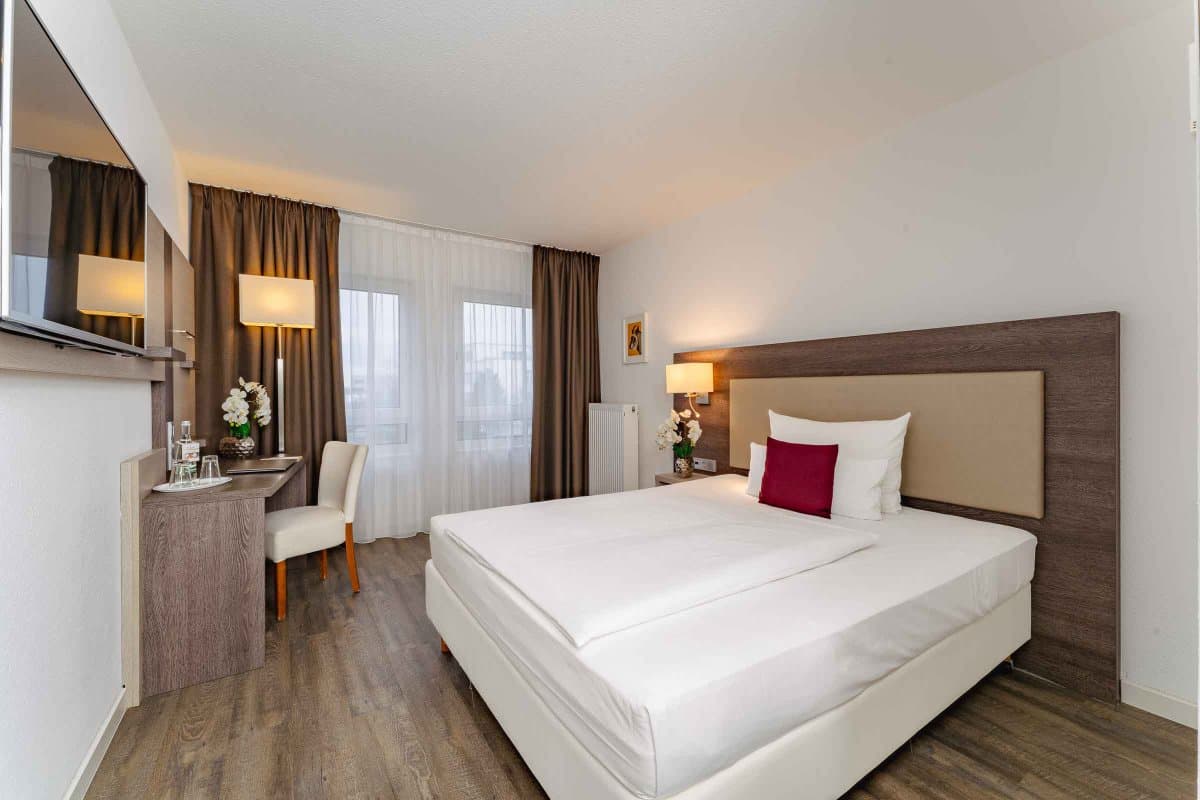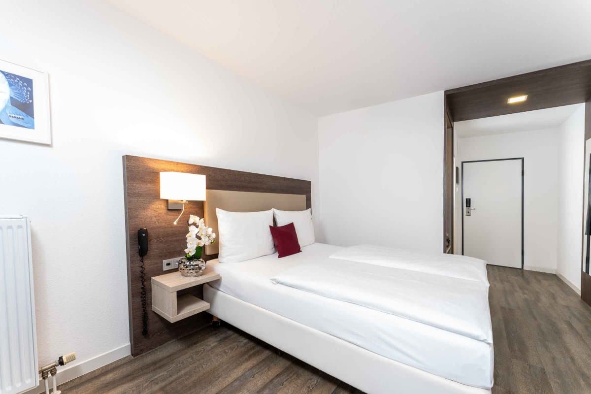 Im PLAZA INN Karlsruhe Nord erwarten Sie nicht nur Komfort und Stil, sondern vor allem die passenden Zimmer für Ihre Bedürfnisse. Für einen kurzen Aufenthalt zum Beispiel im Rahmen einer Dienstreise oder auf der Durchreise in die Niederlande oder nach Österreich bieten unsere Standard und Comfort Zimmer genügend Platz für Erholung sowie zum Arbeiten.
