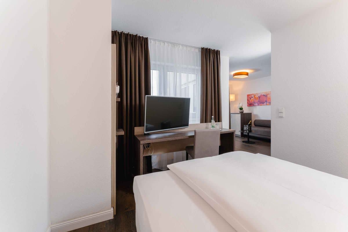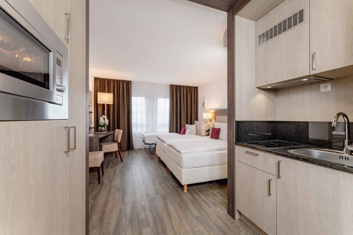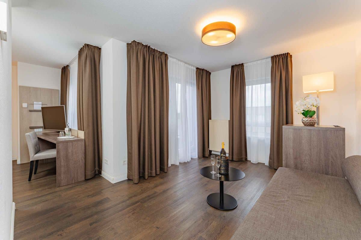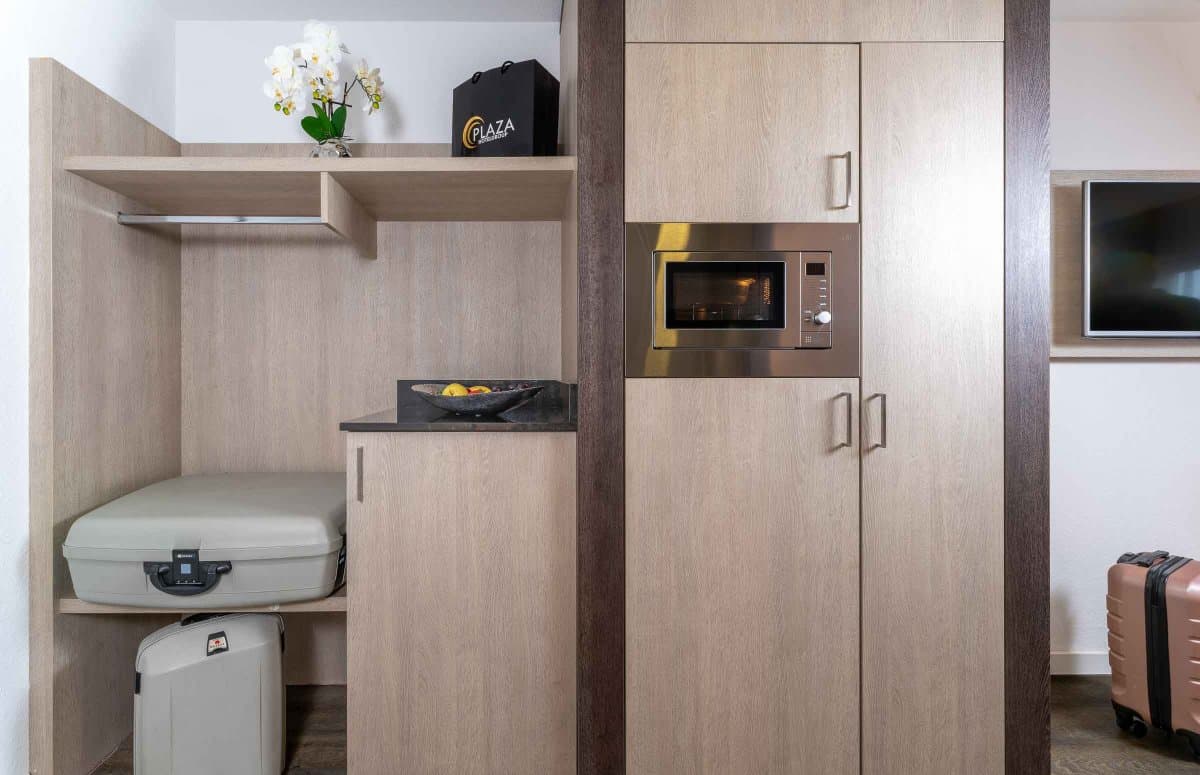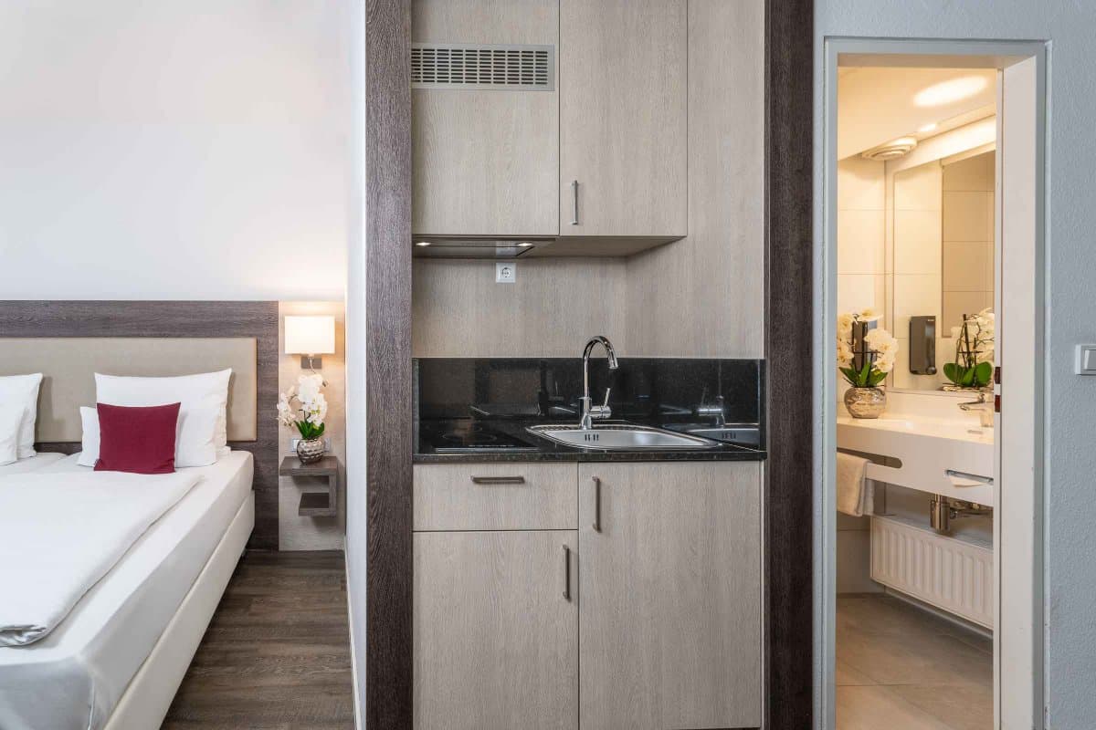 Für einen längeren Aufenthalt zum Arbeiten oder für einen Urlaub mit der ganzen Familie haben wir im PLAZA INN Karlsruhe Nord eine Suite und mehrere Apartments mit einer voll ausgestatteten Kitchenette mit Mikrowelle, Kühlschrank, Cerankochfeld und Spüle zur Selbstversorgung. Fühlen Sie sich während Ihres Aufenthalts wie Zuhause und genießen Sie gleichzeitig die Vorteile eines Drei-Sterne-Hotels.