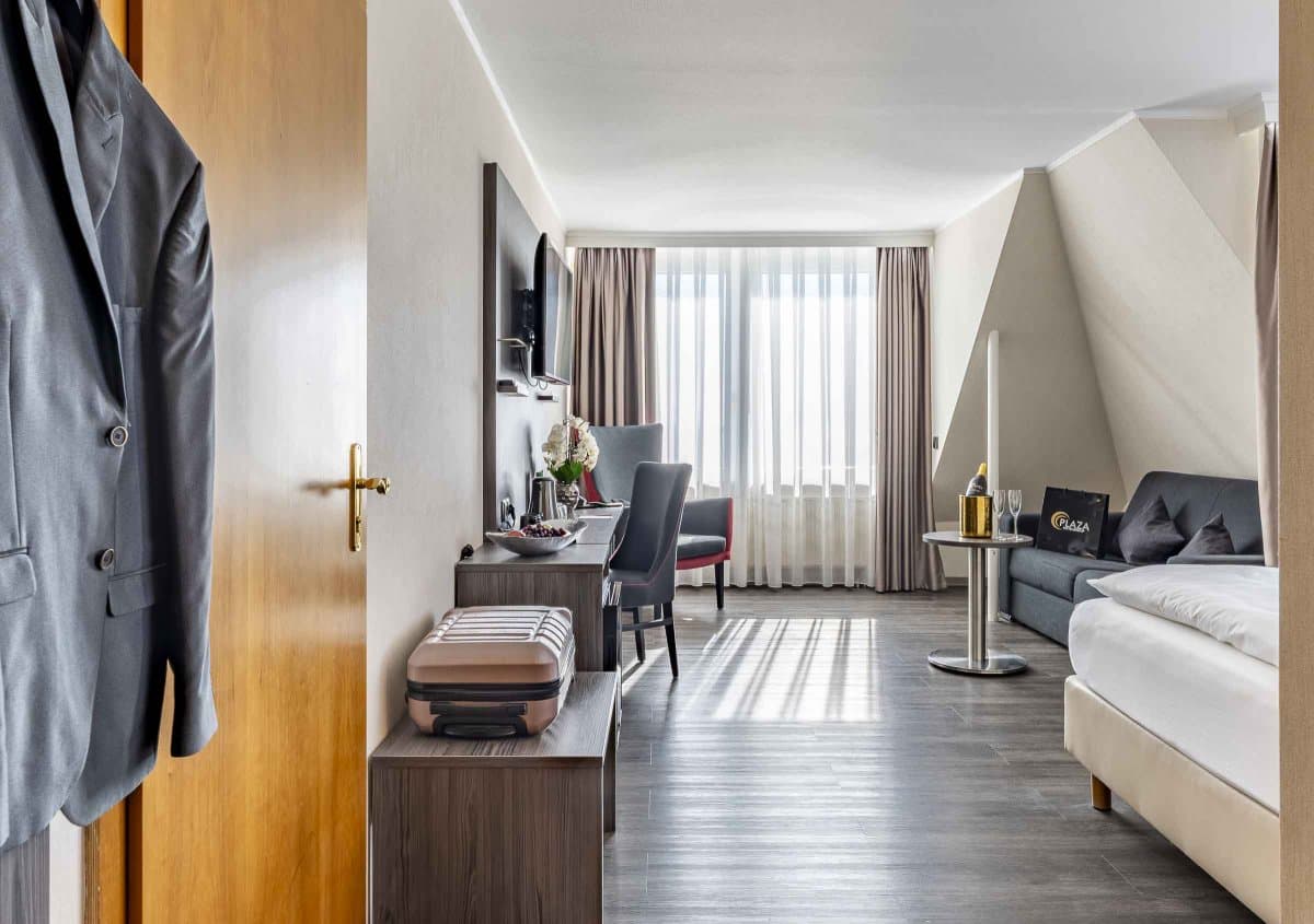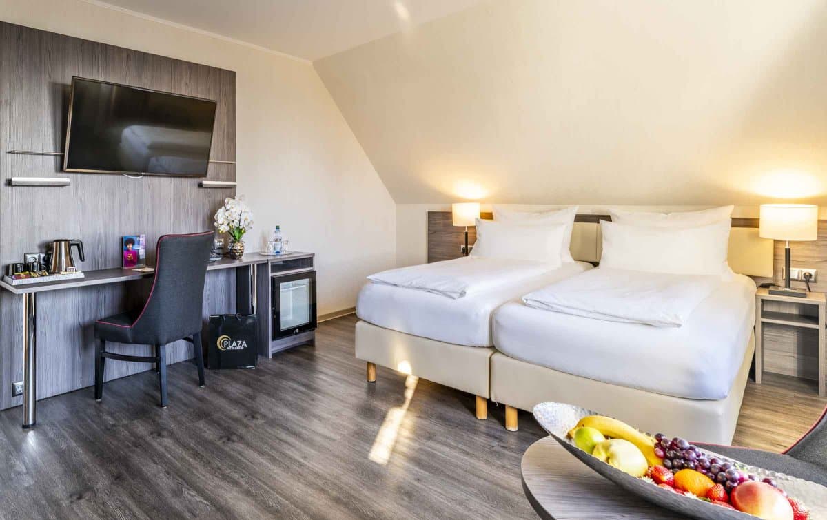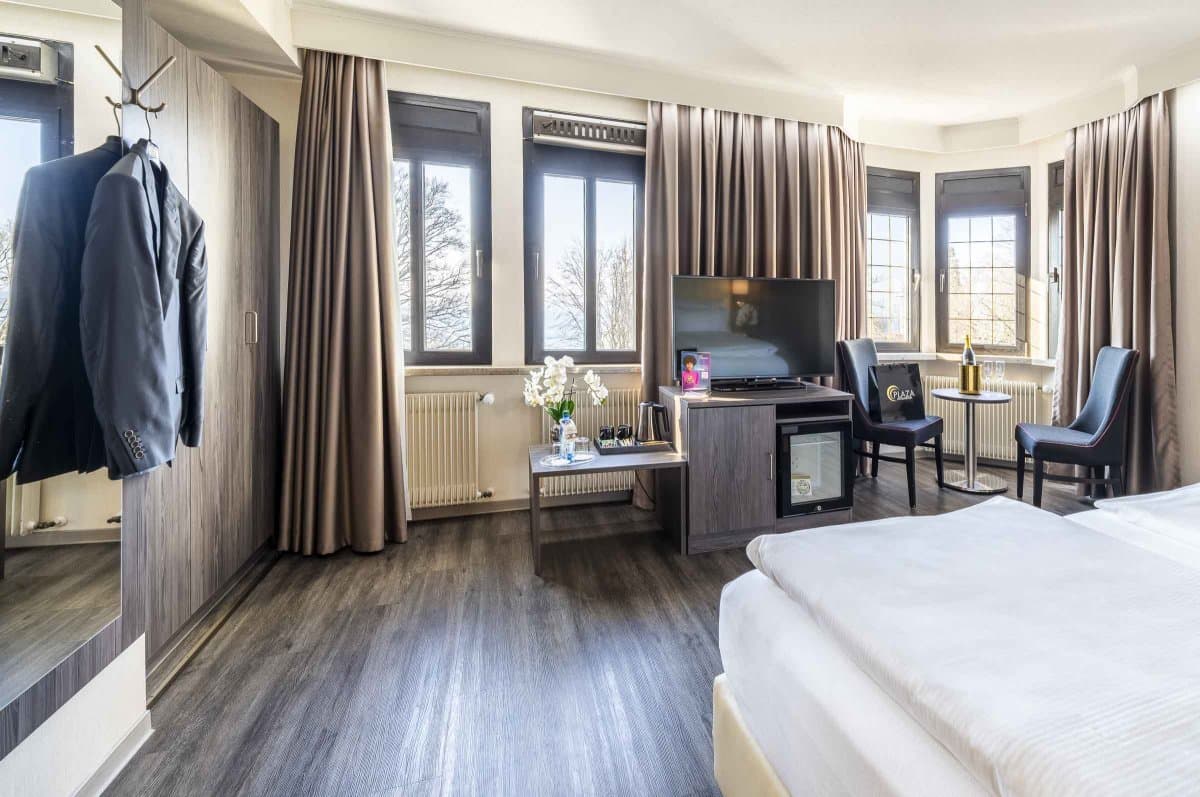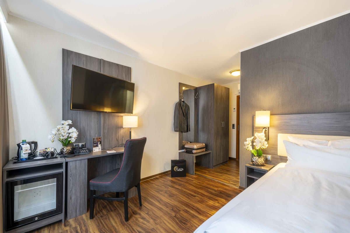 friedrichshafen1@plazahotels.deDie 98 geräumigen und modernen Zimmer verfügen über ein eigenes Bad, extra bequeme Betten, einen Flachbildfernseher, eine Minibar zum Selbstbefüllen und kostenlosen WLAN-Zugang. Alle Zimmer sind bequem mit dem Aufzug zu erreichen. Zur Begrüßung stellen wir Ihnen eine Flasche Wasser auf Ihr Zimmer.