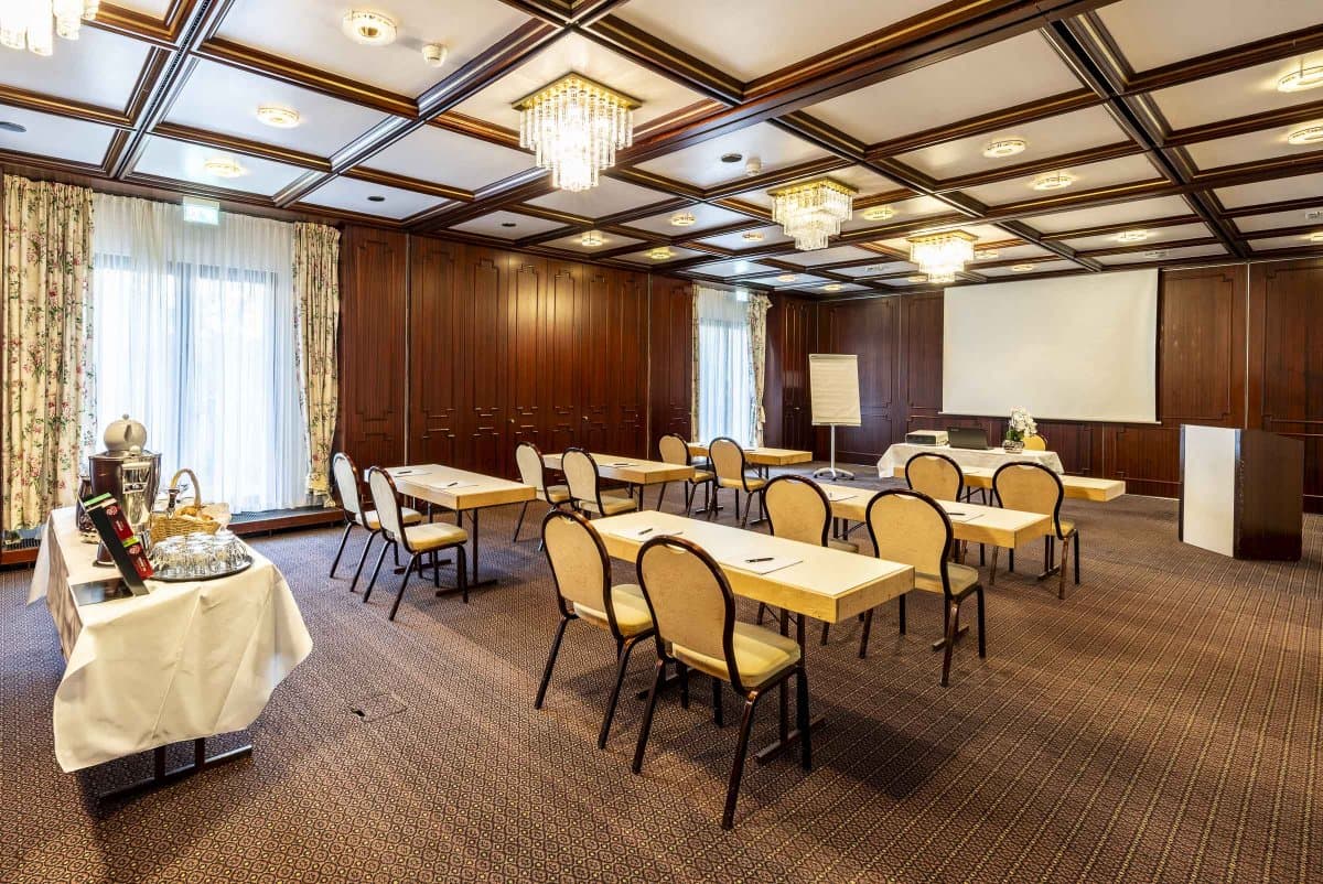 Der flexible Tagungsbereich im PLAZA Hotel Buchhorner Hof besteht aus einem 151 m² großen Raum, der in 2 kleinere Räume unterteilt werden kann. So ermöglichen wir Ihnen maximale Flexibilität je nach geplanter Veranstaltung. Eine große Glasfront mit Türen sorgt für Tageslichteinfall und ermöglicht Pausen im Freien.