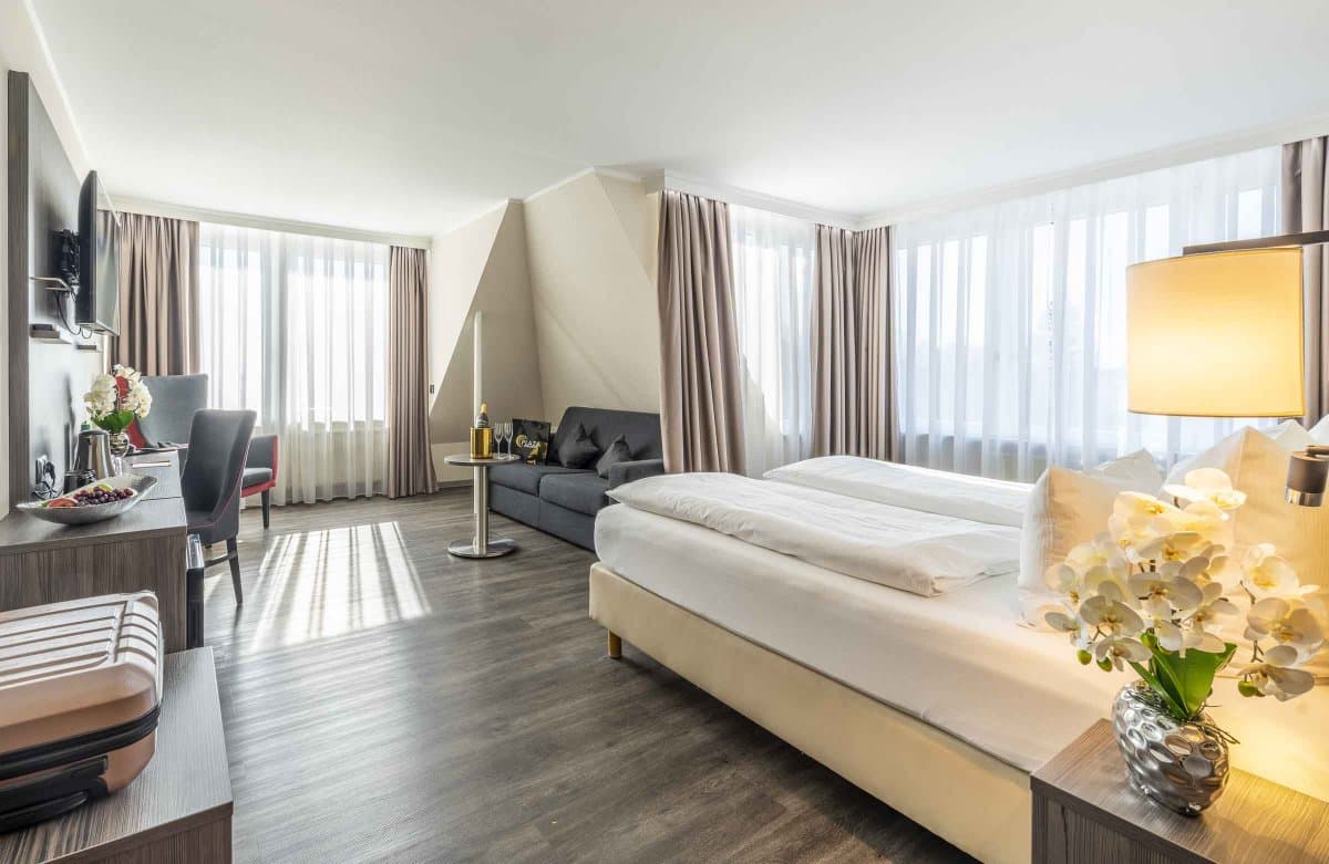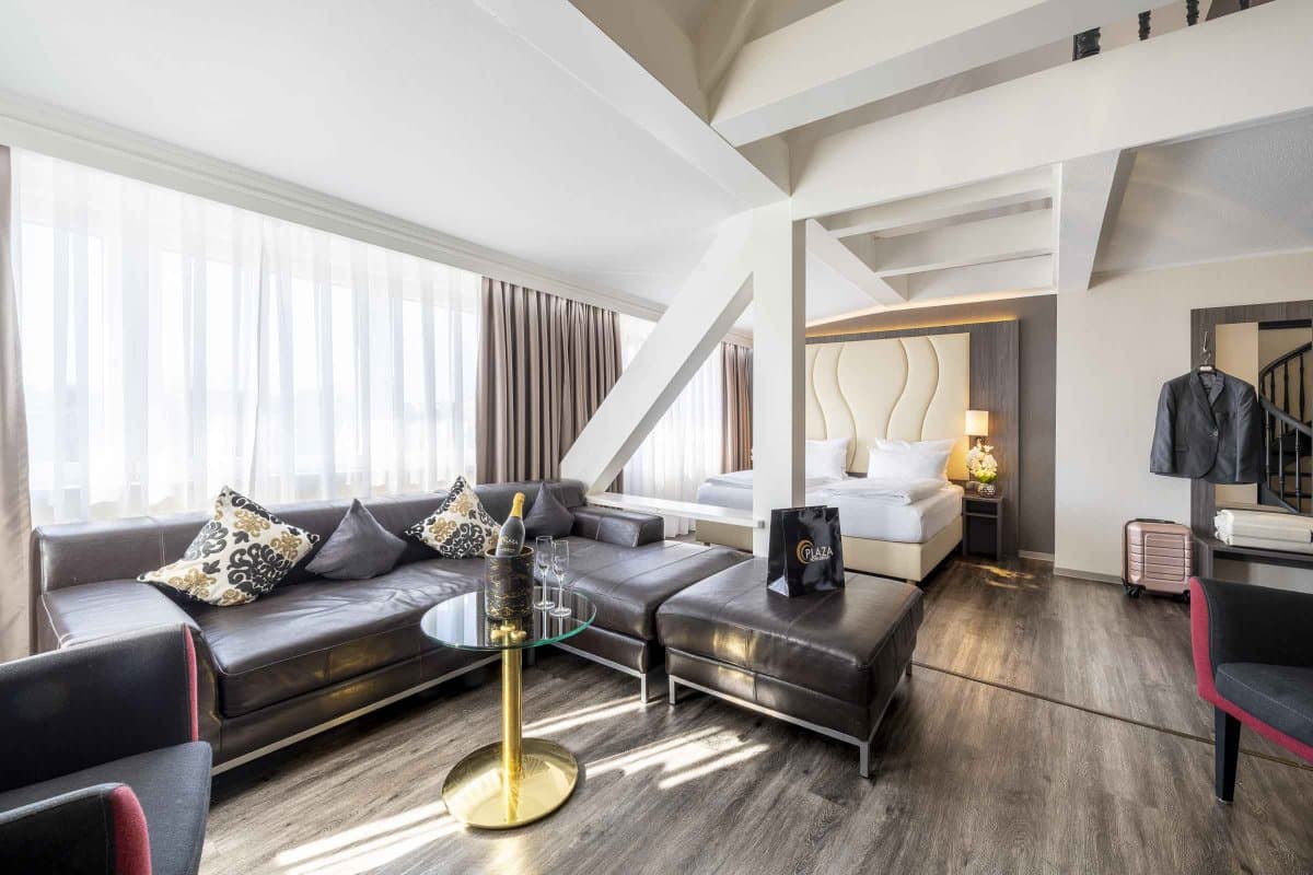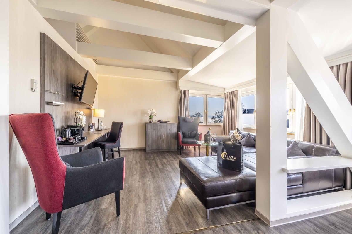 Die zentrale Lage und der hochwertige PLAZA-Komfort sorgen dafür, dass Sie sich als Urlaubsgast ebenso wohlfühlen wie als Geschäftsreisender oder Messebesucher. Das Messegelände Friedrichshafen erreichen Sie mit dem Auto in nur 10 Minuten. Alternativ verkehrt ein kostenloser Busshuttle vom Stadtbahnhof Friedrichshafen, der nur 3 Gehminuten vom Hotel entfernt ist. Der hoteleigene Tagungsbereich bietet Ihnen bis zu 151 m² Fläche für Ihr Event bei uns im Haus.